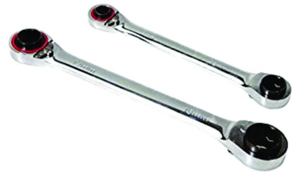 - La llave de trinquete de doble extremo de tipo reversible, incluye cuatro tamaños en una herramienta.